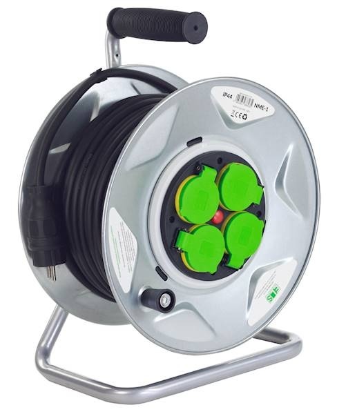 Przedłużacz zwijany jednofazowy na bębnie wykonany jest z bardzo solidnego metalu. Wbudowany wyłącznik termiczny 16A chroni przed przegrzaniem i uszkodzeniem urządzenia. Przedłużacz wykonany jest w stopniu szczelności IP44, posiada klapki ochronne na gniazdach.