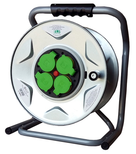 Przedłużacz zwijany jednofazowy na bębnie wykonany jest z wysokiej jakości metalu. Wbudowany wyłącznik termiczny 16A chroni przed przegrzaniem i uszkodzeniem urządzenia. Bęben wykonany jest w stopniu szczelności IP44, posiada klapki ochronne na gniazdach.