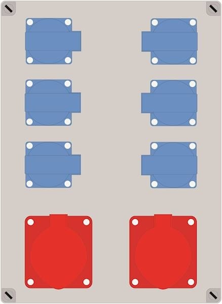 - gniazdo jednofazowe: 6x 16A 3P (2P+Z) 230V IP54