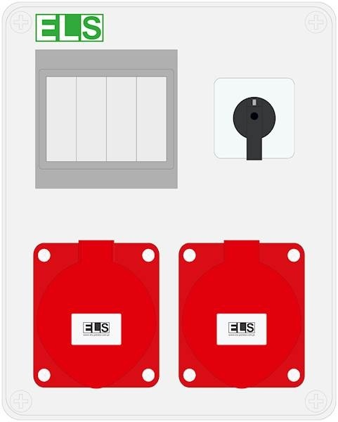- gniazdo siłowe: 2x 32A 5P (3P+Z+N) 400V IP44