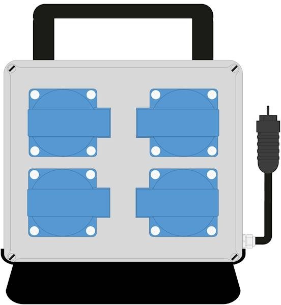 - gniazdo jednofazowe: 4x 16A 3P (2P+Z) 230V IP54