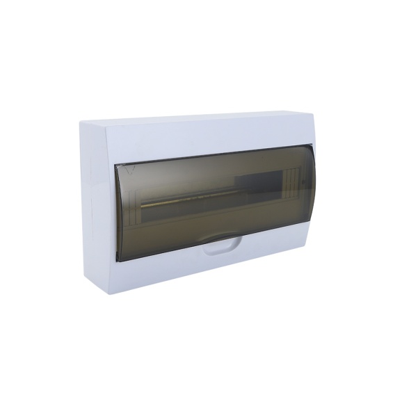 Obudowa w kolorze szarym wyposażona jest w przyciemniane (zadymione) przezroczyste drzwiczki, które umożliwiają kontrolę stanu aparatury bez konieczności otwierania rozdzielnicy, jednocześnie ograniczając widoczność wnętrza i poprawiając estetykę instalacji.