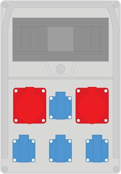 - gniazdo siłowe: 2x 32A 4P (3P+Z) 400V IP44