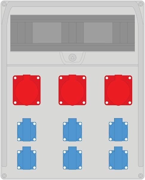 - gniazdo jednofazowe: 6x 16A 3P (2P+Z) 230V IP44