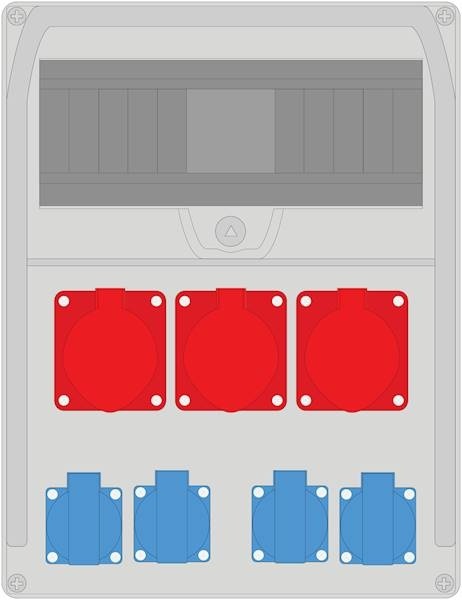- gniazdo jednofazowe: 4x 16A 3P (2P+Z) 230V IP44