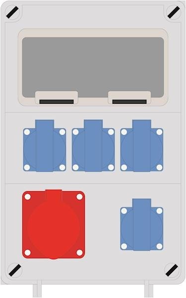 - gniazdo jednofazowe: 4x 16A 3P (2P+Z) 230V IP44