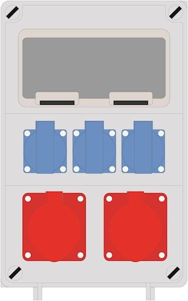 - gniazdo jednofazowe: 3x 16A 3P (2P+Z) 230V IP44